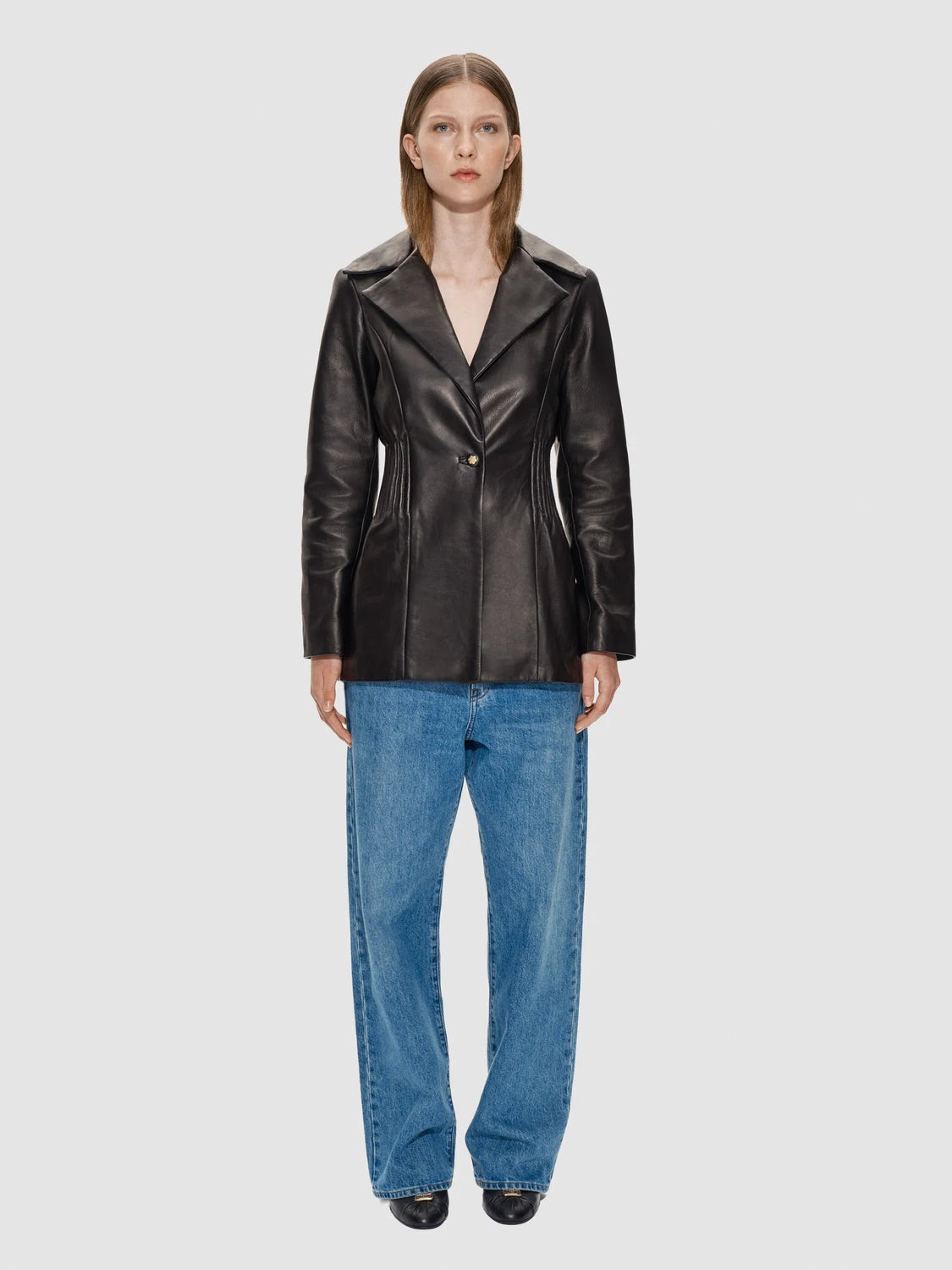 Cecilia Blazer carries the same feminine confidence as the iconic gloves she is inspired by. Tailored and crafted in Denmark from our butter-soft glove leather and lined with peace silk, she blends sharp elegance with effortless ease.