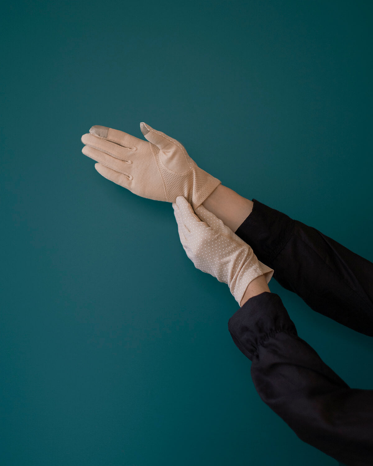Sophia evokes an elegant old-world refinement. The shoulder-long glamorous gloves create a lean and flattering silhouette, but they are also packed with practicality. Thet are easy to wear, as they are one-size and fuelled with touch technology, so you can answer your phone without taking off the gloves.