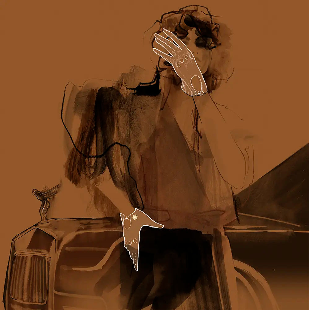 As part of the celebrations, RHANDERS commissioned illustrator Mette Boesgaard to pay tribute to the Flying Lady, capturing her elegance and spirit beautifully - adorned with leather driving gloves from RHANDERS.