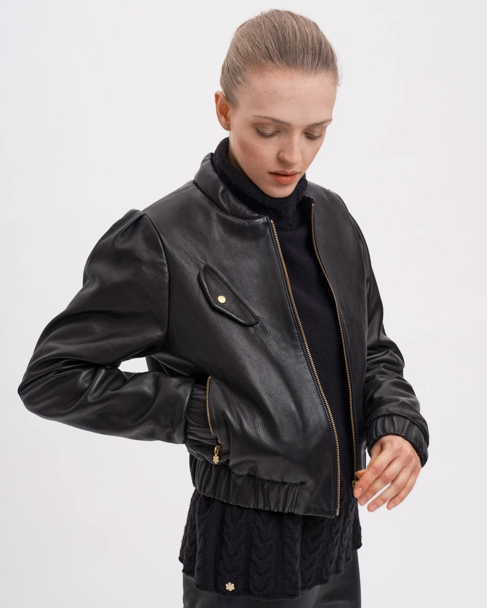 Estelle Bomber Jacket ærer traditionelt håndværk og skræddersyede jakker. Hun er lavet af de fineste, naturlige materiale i vores atelier i Danmark til de højeste standarder og værdier.